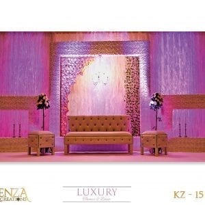 The Mehndi is party time for the girls, although today it is sometimes attended by the groom as well. The bride relaxes on the Mehndi stage while the artist works, because the patterns can take some hours to draw. Superstition has it that the darker the pattern appears on the skin, the deeper the relationship will be, so the bride is encouraged to relax while the pigments set. Meanwhile there is a lot of singing and dancing, and food and drinks. At Kenza Creations, our team of artists can design and produce great décor for the Mehndi.