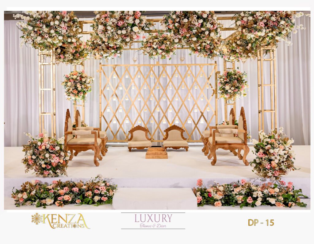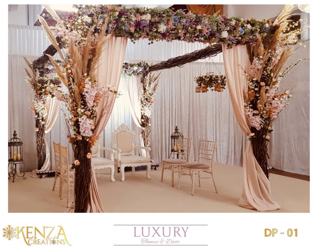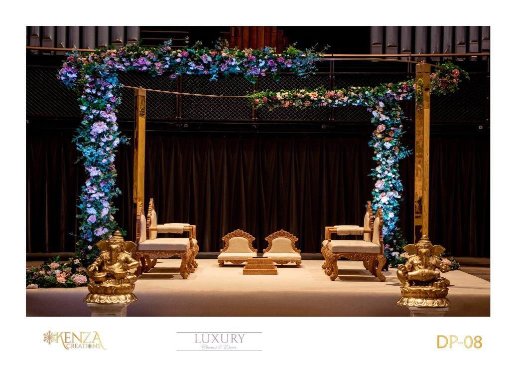 Planning a big fat Indian wedding can be overwhelming, especially a Hindu wedding. At Kenza Creations, we wish to lessen your plight by offering our Indian mandap decoration for hire at competitive prices. You can go through our collection of Hindu wedding mandap decoration and pick one from there, or reach out to us to have your wedding mandap customised.