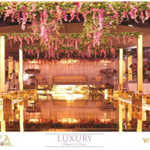 The event table centrepieces are a critically important focal point and will often include large flower decorations at intervals along the tables if they are in long lines, or in the centre of each table if they are square or rectangular and each seat four to six people.